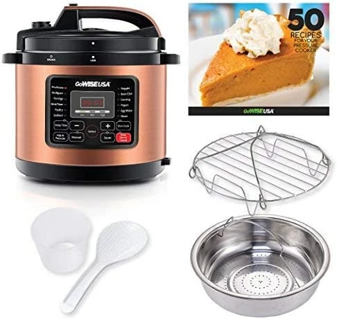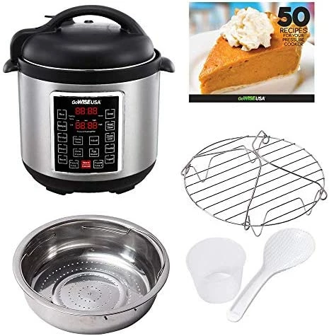 Love my GoWISE……….This thing absolutely rocks. We had a Instapot and a power cooker before and neither could hold a candle to this GoWise unit. The Gowise is so much better quality than the two we had before. Ceramic coated pan not teflon so it’s much more durable and cleans up in seconds, so nice nothing sticks to it!! The display on this unit is much better quality and you’ll know it as soon as you touch the control buttons. Very nice display unit and keeps you up on the pressure inside, that is very nice to know. No other unit I found has that feature. I love that! Another great feature this pot has is this’ say your power goes off for a minute or so during cooking. When it comes back on this pot starts off right were it left off without anyone even touching the unit again. No resetting anything, now thats nice!! As long as it don’t stay off too long your dinner will still be served very close to your schedule even if you forget your cooking…Hey’ it happens, I’m old leave me alone. Another thing that helps my old arse out here is It’s controls are much easier to operate than the other pressure cookers I had, I have yet to find myself needing to look back in the manual for anything after the first use unlike my others done. Very easy to operate.. If you want a large pot for large meals like a pot roast or two then this is the one for you. We cook large meals at times for family visits and we also use it to cook large pots of meat to reheat later to make up other meals for a couple days. It’s very easy to do with a large 12qt or a GoWise (14qt) pressure cooker and either will work out fantastic to make your life so much easier with a busy schedule. Both 12/14 have a stainless lid unlike the smaller model GoWise pots that have plastic lids like other makes. Hope GoWise changes them all to stainless, fit is much nicer and reviews suggest these larger pots seal better with stainless than plastic. In fact I almost passed on this unit from all the bad reviews until I noticed most all the negs were only for the plastic lid models. So think about it, you can buy the largest & cheapest cut of meat that fits in one of these pots and in under 20 minutes time it will come out so tender you can cut it with a butter knife. Most times we simply use the fork alone and no knife it is just that tender. We had always used a slow cooker in the past but not one time since we bought a pressure cooker have we used one again. I think the wife sold it in our rummage sale because’ this does both slow/fast cooking if needed. Another feature these have unlike most other pressure cookers is the pressure is controllable so potatoes and similar foods won’t come out as mush. Whatever pot you purchase make sure it has a “controllable pressure” button & not just time adjustable. That’s all most do is they shorten the time and that’s ok unless something else is in the pot you want to cook longer, adjusting pressure down allows all items to cook just right all together perfectly as one meal with no mush.The flavor of the food cooked in pressure cookers is much better than standard way of cooking, that’s highly noticeable and it is a fact. Something I learned if you cook smothered pork chops in one, toss the chops in the pot with a bit of oil on the bottom like your frying them and brown both sides a minute or two, I use meat/stew button but watch this setting its fast/hot…Keep oil in the pan!! Then after brown put whatever else you want in with them and pressure cook like normal. Browning greatly seals in the juices and keeps them from drying out, they’ll melt in your mouth. Buy any pressure cooker it will change the way you cook forever but’ buy the 12 or 14 qt Gowise so you’re the one who changes everyone you knows way of eating and they’ll forever love you for it!! Watching pressure cooking YouTube videos makes you a pro very fast. Check out Rick Mammana he’s our go to man when it comes to pressure cooker recipes. We thank you again Rick!! It’s by far the best kitchen item we ever bought, that includes our new $1300 convection wall oven and our KitchenAid stand mixer we love so very much..MMM Cake after a GoWise meal…Now I’m hungry again… Heyyy babe’, get that mixer ready please…lol*