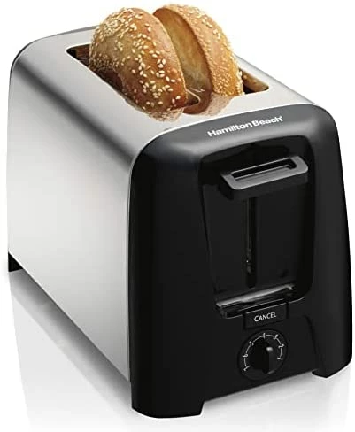 The Hamilton Beachยฎ 2 Slice Toaster is perfect for toasting your favorite breads. It has extra-wide slots that easily fit thick breads and bagels. It also has Toast Boost for small breads, a cancel button, auto shutoff and a crumb tray.