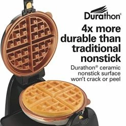 - FLIPS EASILY FOR THICK, FLUFFY WAFFLES. With the ability to flip waffles during cooking, the Durathon Removable-Grid Belgian Waffle Maker lets you create thick, fluffy waffles that rival the ones prepared at the best restaurants.