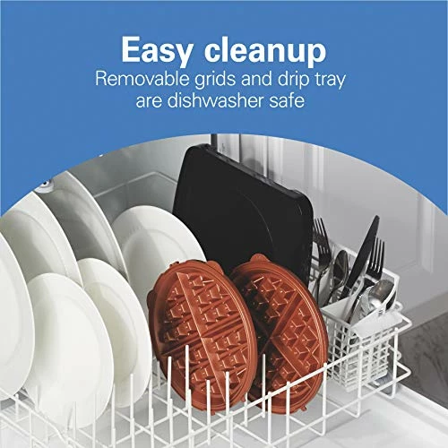 - EASY CLEANUP β REMOVABLE GRIDS AND DRIP TRAY ARE DISHWASHER SAFE. After cooking, simply let the nonstick waffle maker cool, then remove the ceramic nonstick grids and drip tray for easy cleanup in the dishwasher.