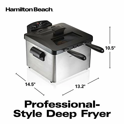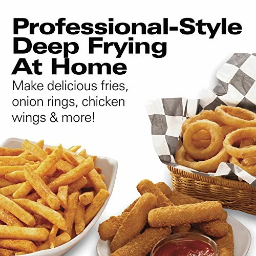 - Less mess splatter free frying: use vented lid while frying to avoid splatters with this professional style deep fryer. Watch cooking through the view window in lid. Basket with hook for easy, mess free draining.
