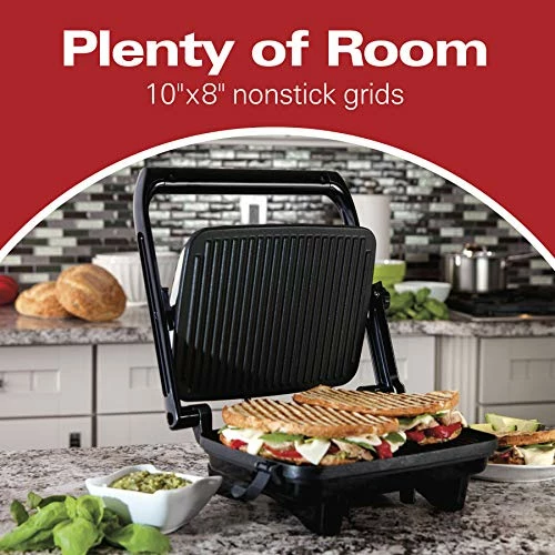 - NO NEED TO FLIP: Nonstick top and bottom panini press grids heat and brown the sandwich, giving you warm, crisp results.