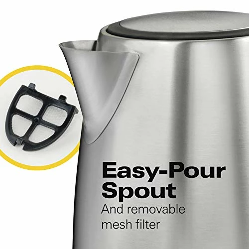 - Easy pour spout and removable mesh filter: The easy pour spout comes with a removable mesh filter to keep scale deposits from leaving the kettle