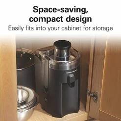 - SPACE-SAVING, COMPACT DESIGN. The compact design of this juicer machine takes up less room on your kitchen countertop and easily fits into your cabinet for storage.