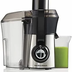 As a first time juicer, I learned that you need a certain kind of receptacle for the juice to flow into. Well the word “flow” is not exactly right because the juicer does a little spitting. The force of the juice coming out of the spout, causes a few drops to kinda fly out in a different direction than the bulk of the juice. So I had to get creative. I found a short and fat glass flower vase with a wide mouth that fit under the spout to catch the juice. Even though my first experience at juicing turned out good, I think the juice receptacle should be provided by Hamilton Beach. I can see the lack of a proper receptacle can become messy and frustrating. I juiced soft vegetables such as cucumber and celery which I thought would taste not so good together but the flavor combination turned out to taste terrific, really good. I look forward to drinking it. Overall, I think this Hamilton Beach is a good buy. The motor seems really strong. I placed a plastic bag in the pulp receptacle and lessened the cleanup. The brush included was very good with cleaning the strainer. I wouldn’t recommend this juicer to all of my family and friends but only to those whose personality would let them see the overall functionality of the juicer and tend not to sweat the small stuff. I hope this review helps you to make a decision.