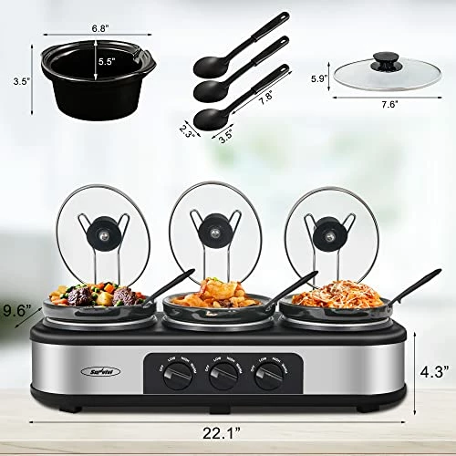 - Mounting Type: Countertop Triple Slow Cooker Food Warmer