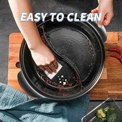 Love this divided pot. We used it for a family style hot pot with 4 people and itβs fantastic to have two different types of hotpot soup at the same time. And itβs easy to be cleaned in dishwasher after use, no stick on the pot. Very satisfied.