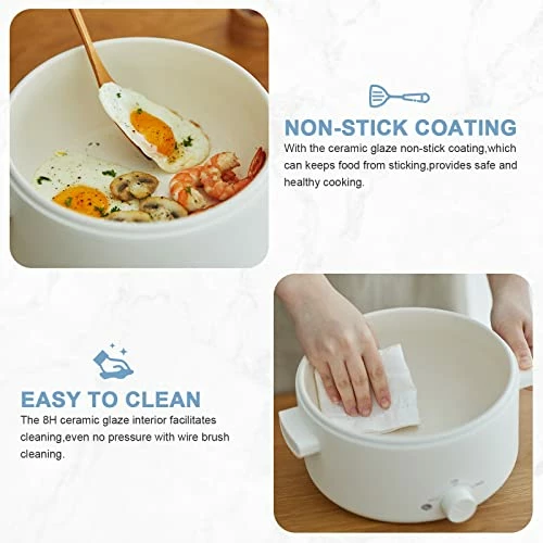 - ?【Fast Heating&Higher Safety】This electric pots uses an upgraded full heating plate,which can keeps your food heated evenly and heated lastingly.Compared with the traditional stoves,this small non stick pot is more durable, easier to cook different kinds of tasty food. At the same time,the small electric cooker has the over-heating protection and boil dry protection device,effectively protect the pot from overheating and continuously boiling when it is dry,make you can rest assured to use.