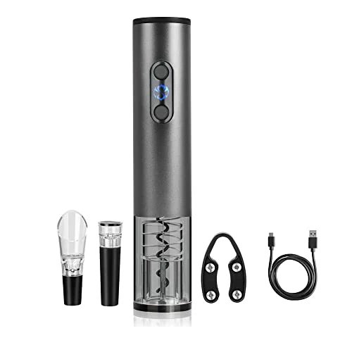 - EASY TO USE: Foil cutter included for easily removing the bottle seal. Two buttons βupβ andβdownβ to remove the cork in 10 seconds effortlessly and prevent your hands from injury. Compatible with most wine bottle sizes.