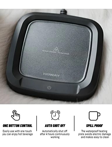 - One Button Control: For the easiest use, HOWAY coffee warmer features only one-button touch control switch, just a hit on the button you can have coffee with the best temperature all day long. This also can heat your beverage from cold to warm after continuously working for 1 hour or more