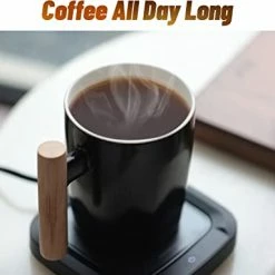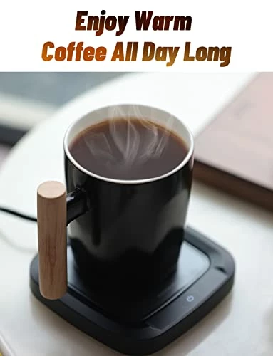 Exactly what I was looking for. I’ve searched for the perfect mug warmer for a few weeks, read a lot of reviews, even watched a few videos. I am very happy that this is the one that I ended up with. One of the things I read was that most “regular” mugs will not work as well on a mug warmer if they have that rim around the bottom. All of my mugs at home have that, so I needed a mug/warmer combo. PROS: Comes with a ceramic mug, which is very important to me, as I enjoy coffee so much better in a ceramic mug. I no longer have to rush drinking coffee, and I no longer have to worry about it getting cold. This is perfect. It keeps the coffee hot for as long as you keep it on the warmer, and it’s turned on. I believe it shuts off automatically after 4 hrs. I have only had it on for maybe an hour or so. It keeps coffee much warmer with the lid on it, but it even works with the lid off. It’s an amazing feeling when you get to the bottom of the cup, and the coffee is still piping hot! No more cold last few sips! I love the look of this mug. Black with a wooden, sturdy handle and lid. CONS:Nothing on this “cons” list is worth removing a star from the review. Just a few little things I thought I would mention. The mug has a metal plate on the bottom that gets extremely hot, I did slightly burn my finger on it. Definitely my fault because I’m not used to using a mug warmer. Lesson learned! The on/off button is extremely sensitive. It only requires the slightest touch to turn on/off. Just something to look out for, and unplugging it when not in use would help with this. Anyways buy this mug/warmer, it is awesome!