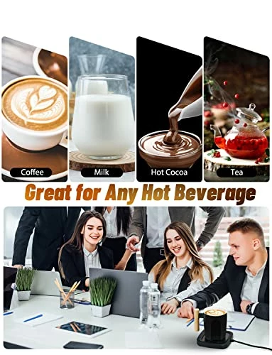 - Warmer & Mug Set:To better conduct thermal from the heating plate to the mug and keep your beverage warm enough even in cold days, we are offering this combo of coffee warmer and flat-bottomed mug, this will warm your beverages up to 140℉/60℃(maximum to 149℉/65℃)