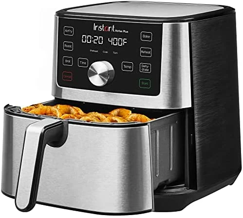 It’s perfect!I’m originally an Instant Pot Duo Plus owner, and I purchased that back in summer of 2020. In November of 2020, I decided to branch out and purchase the Instant Pot Duo Air-fryer Lid attachment just to get the air-fryer “experience” since I’d never tried one before.After 2 wonderful years of use, decided it was time to join the big guys and get a stand-alone airfryer because I found myself frequently using the air-fryer lid, more than I expected to. There were some cons with the lid, though, such as having to have your IP available to use with the lid, more to clean up since the air fryer bucket had to go into the inner liner and any juices or liquids that come off the food would go right into the inner liner itself which meant you had to clean both the bucket AND the inner pot of the Instant Pot. I still made it work though, because I LOVED cooking with that lid, and I managed to make so many good masterpieces with that thing!Fast forward, and my only regret about this stand alone air-fryer is that I didn’t get it sooner! I absolutely LOVE IT! I did encounter that “plastic smell” during the test run, but it went away fairly quickly. First run it was pretty strong; by second run (made a small batch of fries), it was ever so faint, but quickly dissipated. By third run (put a couple Nathan’s Hot Dogs in there), it was gone completely and all I could smell was the delicious food! I’m excited to cook some wings in it soon! I’ve cooked wings in my Instant Pot and crisped them using the air-fryer lid in the past, but it seems you can put the wings straight into the Vortex Plus air fryer: no need for that first step in the Instant Pot! very exciting and looks super roomy. Box says it can fit up to 2.5lbs of chicken which is plenty for me to eat plus have leftovers for a couple days, or even if I want seconds or thirds.I almost thought I would regret not getting the 6QT (I own a 6QT Instant Pot), but turns out the 4QT is plenty for a single person or maybe if you may cook for 1 or 2 other people (I don’t tend to have a lot of house guests; normally it’s just me and my college aged daughter), and it works out to about the same amount that would fit in the air fryer bucket that came with the lid attachment! The difference is in the Vortex everything is more spread out because of the shape and dimensions (I measured the air fryer basket on the 4QT and it is exactly 8in on each side. Would easily fit accessories that are 7.5″ or smaller), but it fits the same amount of food and gets better circulation.Also, I see people complaining about the warning label on the front of the unit. Sure, you could easily remove it with isopropyl alcohol by loosening up the adhesive and then scraping it off, but it’s there for a reason. Pretty sure removing it is classified under misuse of the product and would instantly void the warranty if anything were to go wrong and that label were missing from the unit. They’d (the company) def use that as an excuse to not help you with your issue(s) should they arise. So, I say suck it up and let the label stay. It’s there for your own safety and protection in case anything goes wrong and you end up needing to get something replaced or serviced. If it’s that serious, at least just move it to another part of the unit, like maybe the side or back, but def don’t toss it out completely. I personally see no problem with it being where it is, so mine is going to stay put. All I care about is what the inside can do, not something as frivolous as a warning label on the outside.Anyway, I digress. I wanted to finish off by saying, I recommend this appliance and its size if you are a single person, or maybe a household of two; up to 3 persons. If you believe you are going to be making much larger portions of food, or larger batches for multiple ppl, then adjust accordingly and get the 6QT, 9QT, or even 10QT. I personally do not need anything that big, so 4QTs is plenty. Also I was so glad that I was able to measure the inner basket because it seems that information is so difficult to find anywhere. I mentioned it above, 8″ X 8″ square with rounded corners. I find that a lot of the accessories that will fit into the 6QT Instant Pot, will fit into the 4QT Instant Vortex Plus Air Fryer. So I will purchase accessories based on that information. Generally, anything between 7″ and 7.75″ will fit into it unless it’s just very oddly shaped or something.I’m excited to cook a lot of my other favorite dishes in this unit, as well as dishes I’ve never tried cooking in it before! Worth the money spent! I chose the Instant Vortex Plus because Instant is a brand that I already have experience with, and therefore it’s a brand I trust. I look forward to seeing what else they come out with.