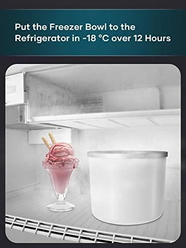 - 20-min Quick Make: Place the pre-frozen bowl in the refrigerator for 12 hours at -18Β°C freezing temperature. The next day, You can make a delicious ice cream just 20 min. and you will adore this summer.