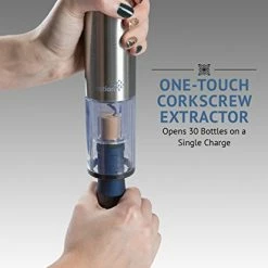 - ELECTRIC CORKSCREW EXTRACTOR β Stainless Steel Touch-Button Opener Removes Up to 30 Corks on a Full Charge; See-Through Window for Easy Viewing