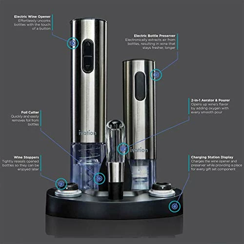 - VACUUM PRESERVER & STOPPERS β Electric Wine Pump Extends Wineβs Freshness by Removing Air From Open Bottle & Sealing w/Special Date-Stamped Stoppers