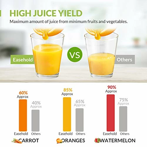 - Healthy & Delicious Juices: Extracts the maximum amount of nutrients, vitamins and juice from minimum amounts of fruits, vegetables and leafy greens without destroying the natural flavor and nutritional benefits.