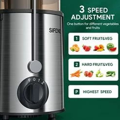 - 【3 Speed Juicer Machine】Features 3 speeds(12000-18000 RPM) to handle soft and hard vegetables and fruits in just five seconds. “1” low speed for soft fruits and veggies, such as watermelon, orange, strawberry etc. “2” high speed for some hard fruits and veg, such as carrot, apple, pear etc. “P” is the highest speed(Reach maximum speed after release)