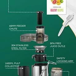 - ?【PURCHASED WITH NO WORRIES】Equipped with 1.6 L pulp collector so it’ll save you trips to the dustbin. The foam protector saves you the trouble of removing your foam manually. In addition, a delicious Recipe Guide for juicing beginners and juicing pros. 24 h friendly customer service.