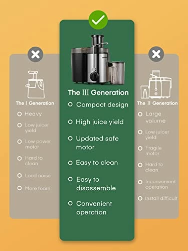 - ?【FOOD GRADE HEALTHY MATERIAL】The Centrifugal Juicer adopts food grade material, 304 stainless steel material, Anti-corrosion sharp blade and precision filter, escort for your health; compared to other juicers, up to 35% of the juice and 45% of the vitamins and minerals can be extracted.