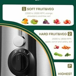 - ?【3 SPEED CHOICES】3 speeds adjustable, depending on what kind of fruits and vegetables you’re going to juice, soft or hard, all can be handled easily. The centrifugal force separates the pulp through tiny holes in the strainer, pure juice filled with nutrients are left behind. The “P” can offer you an extra boost when needed and it will return to normal speed when you release your finger.