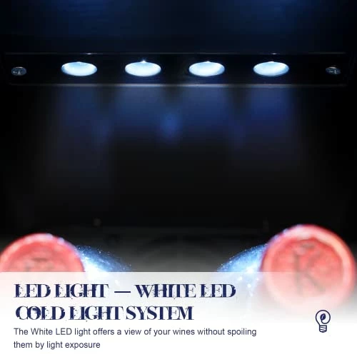 - Flexible & Compact Body: Internal space storing 12 bottles of 750mL Boudoir wine of your favorite collection. It’s the perfect choice for the wine lover having various wine collection. White LED light keep your wine in a beautiful environment, help you selection of your favorite wine at all times.