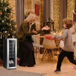 - Two Lock & Stainless Steel Door: 2 safety lock in the unit, prevent kids playing with your cooler or frequent opening with temperature changing and affect your wines. The wine would lay on chrome racks for aging without inside mechanic actions. Special stainless steel frame with 2 layers of tempered glass stabilize temperature levels inside and keep glass from fogging.