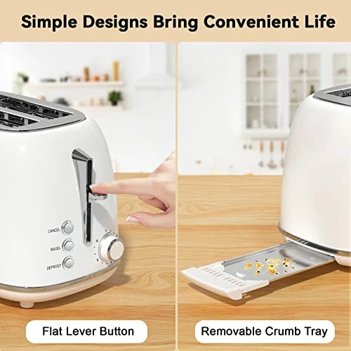 - Simple Designs Bring Convenient Life: Flat lever button guarantees easy operation; Removable crumb tray ensures convenience of cleaning; Cord storage keeps tidiness of countertop; Non-slip base stabilizes the body of toaster.