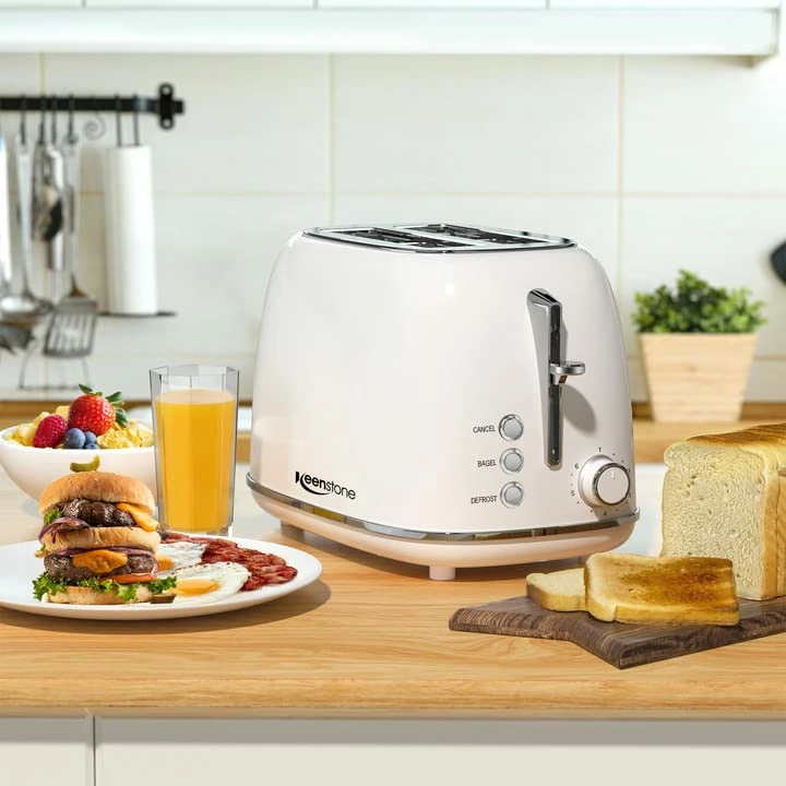 - Bake and Eat in Safety: The Keenstone two slice toaster is made with the highest quality 18/8 stainless steel, which is durable, non-toxic and BPA-free. The practical functions and metal cool-touch housing make toasting easier and faster while ensuring a rapid cool off.