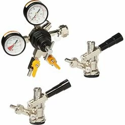 Dispense up to two kegs of delicious cold draft beer from your very own kegerator with Kegco’s Standard Dual Tap Tower Kegerator Conversion Kit! This kit comes with all of the high quality commercial-grade parts you’ll need to successfully convert your refrigerator or freezer into a two product beer dispenser, including a dual gauge regulator for safe and easy CO2 management and durable lever handle American D system Sankey couplers with an easy-to-use design. Putting the finishing touches on your new DIY kegerator is a sleek 3″ diameter double faucet chrome plated draft tower with two matching chrome plated faucets, which gives your kegerator a stylish look that is sure to impress your friends. This kit comes with an empty 5 lb. aluminum CO2 tank.