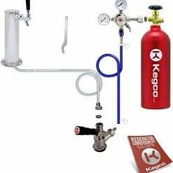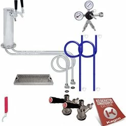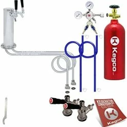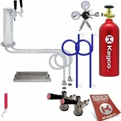I got this for a Nostalgia Electric single tap kegerator. It replaced a 2.5″ tower after a little bit of work to the top of the kegerator with a drill and some rivet nuts. The quality of the hardware components is all pretty good, and I’ll be sure to test it out real well during the Super Bowl. I do have a few complaints with the kit, two of which were fairly easy to fix. The Y fitting on the regulator and the two shut off valves in it were fairly loose. An adjustable wrench fixed it up. The one valve was so loose that I was actually able to tighten it some by hand. The other issue is with the insulation in the tower, or lack there-of. It came with a piece of thin foam that looks more like it was packing foam wrap as it was an 1/8″ thick at best. I removed it and replaced it with a piece of pipe insulation with an OD of ~2 5/8″ that fit perfectly. The last complaint is that the beer lines are only 4-5′ long, and the airlines are basically the same length. I didn’t try to lengthen them yet, but will likely get some barbed couplings, clamps, and some more tubing later, but I will see how much the beer foams first.2/12/2014 UPDATE: Used the system for the Super Bowl and had a few issues. The one side was not getting CO2, not sure if it was a regulator problem or something else. Found it a few days later when the line side pressure was 2 psi. Checked the connections and looked for problems, turned the pressure up and problem solved. A week later, my CO2 bottle is empty after maybe a full sixtel (likely less) of beer from the two kegs. Got my 2.5lb bottle filled and checked for leaks only to find everything at the “Y” fitting leaking. Both valves in going into the “Y” and the “Y” going into the regulator. I guess when I tightened them initially, it wasn’t tight enough. The one valve I couldn’t get to stop leaking, so I removed it and then all the teflon tape, then had to put more on, probably close to 10-15 wraps before it actually stopped making bubbles with soapy water. Checked other areas and didn’t find anymore leaks, but time will tell if I actually got them all. Hopefully they’re all fixed now as I’d like to not loose all my CO2 before the beer is gone. I’d rather give it 2.5 stars if possible after the latest issue, but I can’t give/take a half star.2/27/2014 UPDATE: Another update, and the rating on this kit has dropped to 1 star. The regulator that came with the unit is bad. On top of all the leaks from it, it just doesn’t work. I could not get it to maintain a constant serving pressure. It would either get set at 8-10 psi, then a few hours later be at 30+ psi, or you couldn’t get the pressure to go up at all. Sadly, it usually increased steadily, and there is now a mess in my kegerator as it forced beer out of the lines at the faucet when it was over pressurized, and the beer leaked down into and onto everything inside the kegerator. I contacted the seller, and the response was “we frequently have regulator issues, here are instructions to fix it yourself”. Sadly, it took several tries for them to actually send the instructions. I don’t see how you sell a product when you frequently have problems with the most critical piece in the product. Needless to say, after I finally got the instructions and took apart the regulator, there was nothing inside it causing a problem, so I put it back together, and would you imagine that it is still bad? Now I need to try and get a refund. Luckily, the regulator that came with the kegerator is fine, so I just swapped the Y fitting over onto it. If I could buy again, I’d go spend another $20-30 somewhere else and get a different kit from another vendor, as this one is not living up to any standard other than poor.