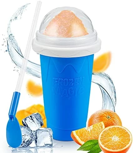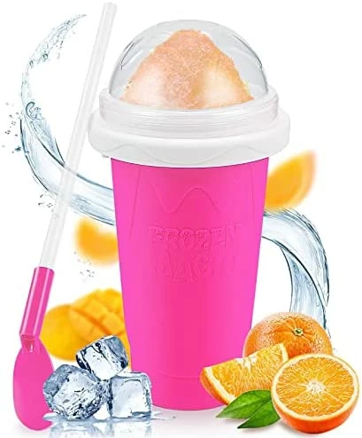 - 【Quick Frozen Magic Slushy Cup】No complicated steps and machines, this slushy cup has built-in freezing liquid, transforming any liquid drink into refreshing slush in just a few seconds. Freeze the slushy maker cup for 4-6 hours, then pour in whatever you want. Squeeze it for a while, you will get a delicious, safe, and hygienic smoothie quickly,without diluting the original flavor.