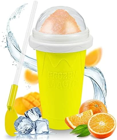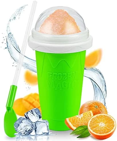 - 【100% Food Grade Safe Material】This slushie maker cup is made of BPA Free, food-grade silicone, which is durable and healthy. This frozen magic slushy maker is 100% safe for kids. The slushy cup body adapts food-grade silicone, soft and non-deformable.The ice cream machine all parts are adapted detachable design for easy cleaning. You can wash cups with water and refreeze them for repeated use.