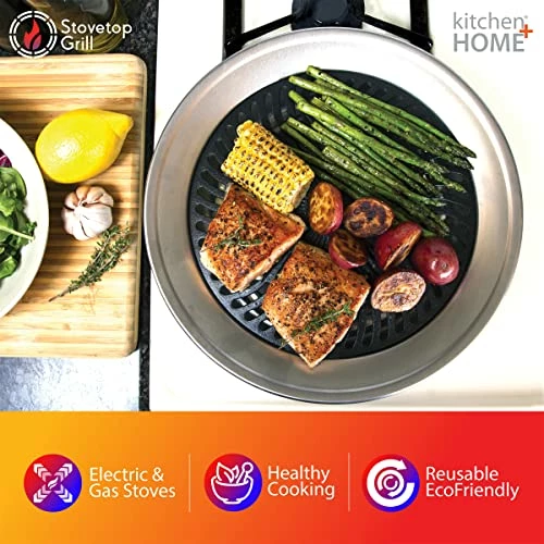 - PREMIUM QUALITY – Our durable, wear resistant double-coated stainless grill is one of the most convenient ways to cook outdoor food inside that taste amazing. Start eating healthier and better tasting food when you cook with this stove top grill without needing to spend as much time and effort.