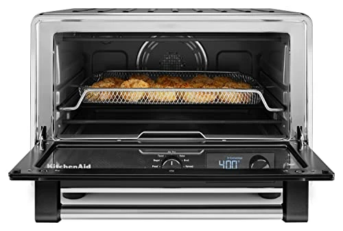 This replaces a considerably cheaper countertop toaster/oven and our upgrade is worth it. The temperature controls are more accurate, it preheats quicker, it doesn’t have a gap at the door hinge that fills with crumbs, the tray is much sturdier and has a rack that fits it and it is easy to set the time for any cooking method. I am glad I chose Kitchenaid, which I did because our blender and mixer are also good quality, from Kitchenaid. I wasn’t ready to spend a fortune for countertop appliance because we have an oven as well, but this seems like a good price point for a well made product.