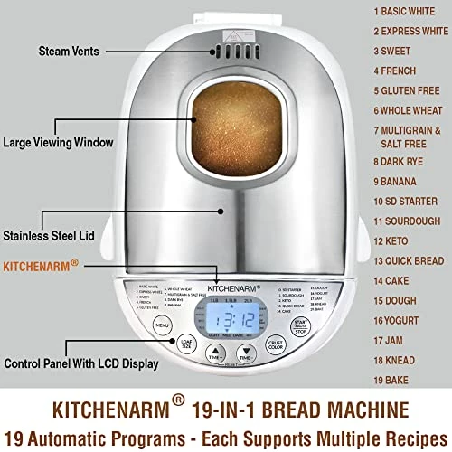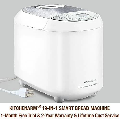 This is an awesome machine for such a great price. I love the fact that it makes the perfect gluten free bread .(I use the gluten free brown rice flour) plus I love the fact that you don’t have to use bread machine flour. I just made a whole wheat loaf using the recipe in the book that comes with it.I definitely would recommend the Kitchen Arm bread machine, so simple and easy to use.