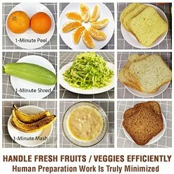 - FRESH FRUITS & VEGETABLES – For better flavors and nutrition, we often use fresh vegetables and fruits in our recipes. – KitchenArm Menus and Recipes are specially designed to handle fresh onions, oranges, apples, zucchini, overripe bananas, etc. in the most efficient way, so that the human work involvement time in preparing them is truly minimized (usually just a couple of minutes).