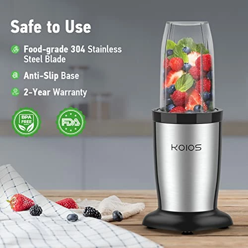 - Upgraded 304 Stainless Blades – KOIOS bullet smoothie maker & juice blender with 6-leaf cross and flat 2-leaf blades design allows to blend and extract nutrients easily. Turn toughest whole foods into nutritious shakes, smoothies, and nut butter in 10 seconds.