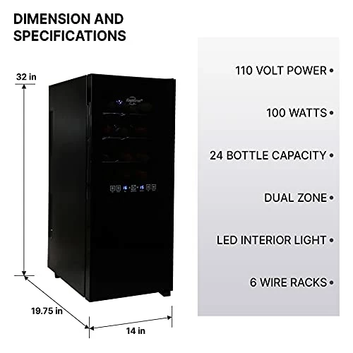 - Dual Zone Cooling: Separately controlled upper and lower zones can each hold 12 standard Bordeaux bottles at their ideal storage temperature so you can get the most out of your favorite vintages
