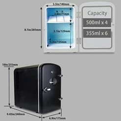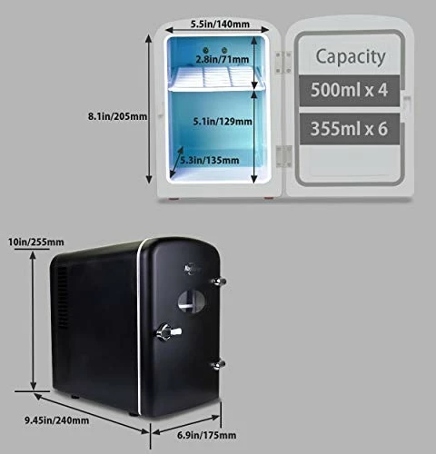 - Compact Size with 4L Capacity: Personal cooler with removable shelf and inset carry handle holds 6 standard soft drink cans and fits easily on a desk or shelf; Dimensions 6.8 in (17.3 cm) x 7.0 in (17.7 cm) x 10.0 in (25.4 cm)