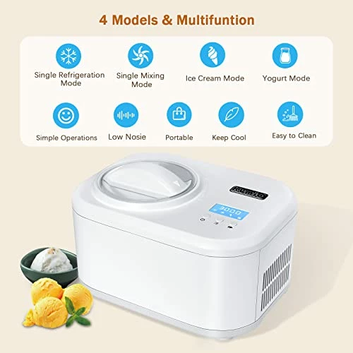 - Self-freezing & Fast Make- The ice cream maker machine built-in 100W self-cool compressor, different from old school ice cream machine that needs to pre-freezing the bowl. Allows you to make tasty ice cream, yogurt, sorbet,Gelato,and dessert within 1h whenever you want.