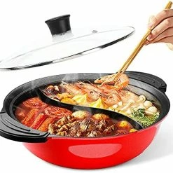 - HIGH QUALITY: Our hot pot is made of food grade aluminum alloy body and High-permeability stainless steel bottom, compatible with various heating methods. The pot can get a good heating effect on the induction cooker by 430 magnetically conductive stainless steel pot bottom. The daily heating source such as electric stove, induction cooker, electric ceramic stove, etc. can be used smoothly.