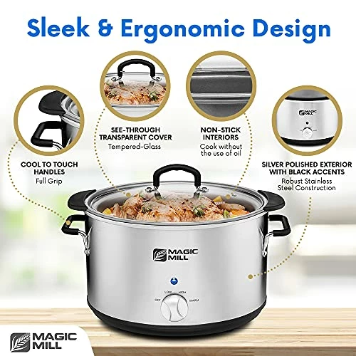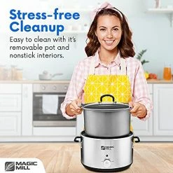 - PREP, COOK, AND SERVE – The Magic Mill Slow Cooker Features 10 Quart Crock that allows you to cook delicious and healthy foods from full-course meals to side dishes. It has a removable pot that doubles as serveware – you can even use it on your stove!