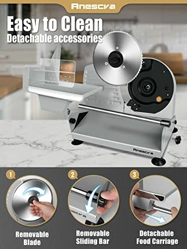 I make a lot of homemade breads and meats, and wanted something to do a better job at slicing than my manual method that ended up with inconsistent cuts. After much research I decided to give the Anescra a try.It does a very good job with meats, breads, cheeses, and veggies. The blade speed is not like what you would get in a professional slicer, but for my needs in home use it does the trick. One of my favorite things to make is Chicago Italian Beef Sandwiches, but I could never get the meat sliced really thin even when cold. When I put it through the slicer the cuts were perfect with very little waste.My only dislike is that it is a bit of a pain to clean. Removing the blade to clean is easy, but as its heavily treated you need to very careful when wiping it does as the blade is super sharp and there is a lot of grease used on the backside. You also need to reach into difficult nooks and crannies to remove small pieces of what you cut, but I found using compressed air makes that easy.Iโve used it well over a dozen times and it has done a great job every time. For my needs it checks all the right boxes.