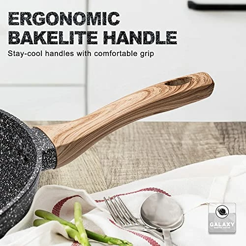 - ERGONOMIC BAKELITE HANDLE – The 5 Quart wok pan with lid has heat resistant bakelite handle which is suitable for grasping and staying cooling while cooking. Including Glass Lid locks in flavors while making it easy to check on cooking progress.