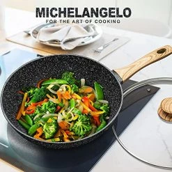 - INDUNCTION COMPATIBLE – The wok pan with lid is suitable for induction, gas, glass, ceramic and electric. And the nonstick wok is made with a flat bottom which allows it to be placed evenly over heat source, heat evenly and quickly.