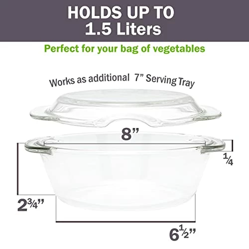 - Guaranteed: Return for any reason for 30 days | 1.5 liter size, microwave/oven/dishwasher safe | perfect for your 16-32 oz. bag of vegetables etc. | Easy to clean