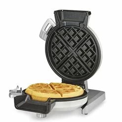 I have been making many waffles lately and I have tried different brands of waffle mix and the waffles come out great. When you are pouring the waffle mix, pour it in slowly by the time you see it getting full, it will bubble up and overflow the top spout. Since you can’t remove the waffle grids, you can’t remove them to wash them out so I use a damp paper towel to clean up little specs of dried batter. I like that it doesn’t take up much room on my countertop.