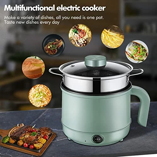 - โใNon-stick electric cookerใ 1.7 L, enough to have a meal with friends, double layer with stainless steel steaming rack, electric cooker with two adjustable temperature controls, providing powerful enough power to cook and heat quickly The food in the pot. The transparent glass cover ensures that the food is easy to see during the cooking process. Anti-scald handle, non-slip heat insulation, comfortable grip, satisfy your different needs.
