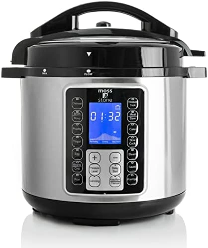 - QUALITY STEAM COOKER: We at Moss & Stone use the best materials for our products; the outer of the rice maker is made from stainless steel for a clean look, with an easy grip handle for easy opening that does not heat without getting burnt in any use, inner pot is coated with – Aluminum non-stick for easy cleaning, the large LCD display in the front can work as an indicator – countdown timer -and โkeep warmโ time.